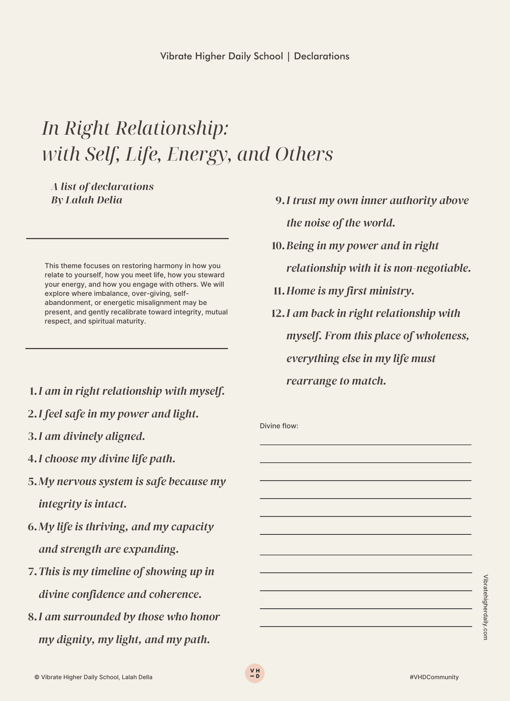 Now you can work even deeper with In Right Relationship: with Self, Life, Energy, and Others with our all-new downloadable and printable PDFs. You can download the journal only or the set, which includes declarations and the journal.