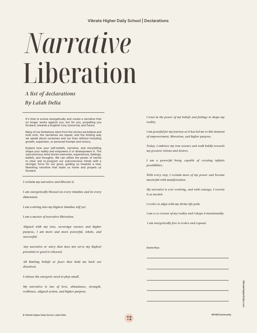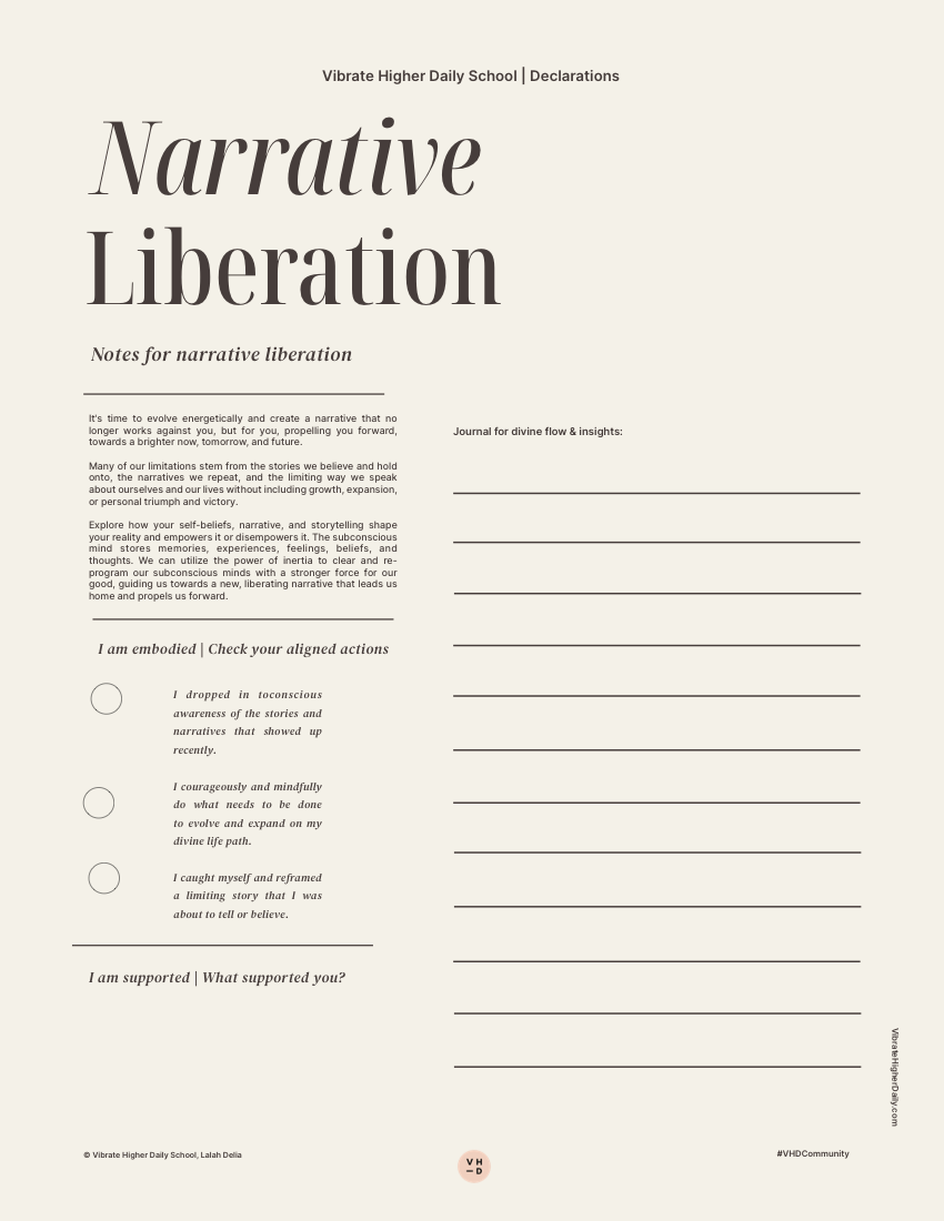 Now you can work even deeper with Narrative Liberation with our all-new downloadable and printable PDFs. You can download the jounal only or the set, which includes declarations and the journal.