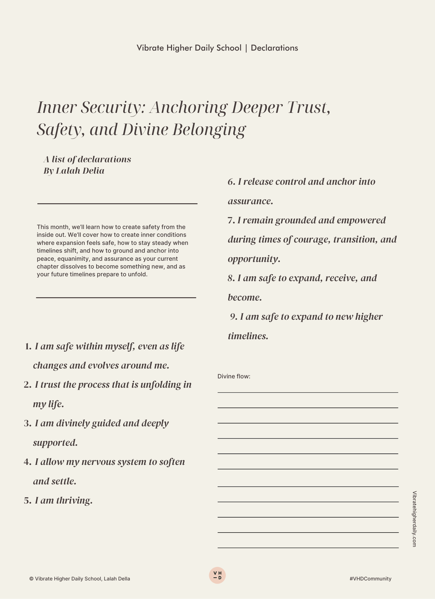 How can I create safety from the inside out today? This might look like nervous system care, prayer, deep rest, bathing in magnesium flakes or Epsom salt, or choosing not to overextend yourself. Inner security grows through consistent, embodied choices. It is also strengthened by what you courageously say yes to through aligned action. What choice today supports your sense of safety, trust, and inner assurance?