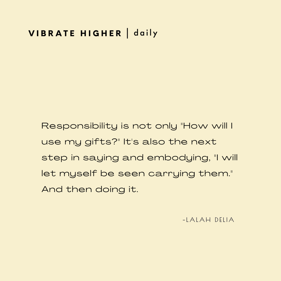 Responsibility is not only "How will I use my gifts?" It's also the next step in saying and embodying, "I will let myself be seen carrying them." And then doing it.