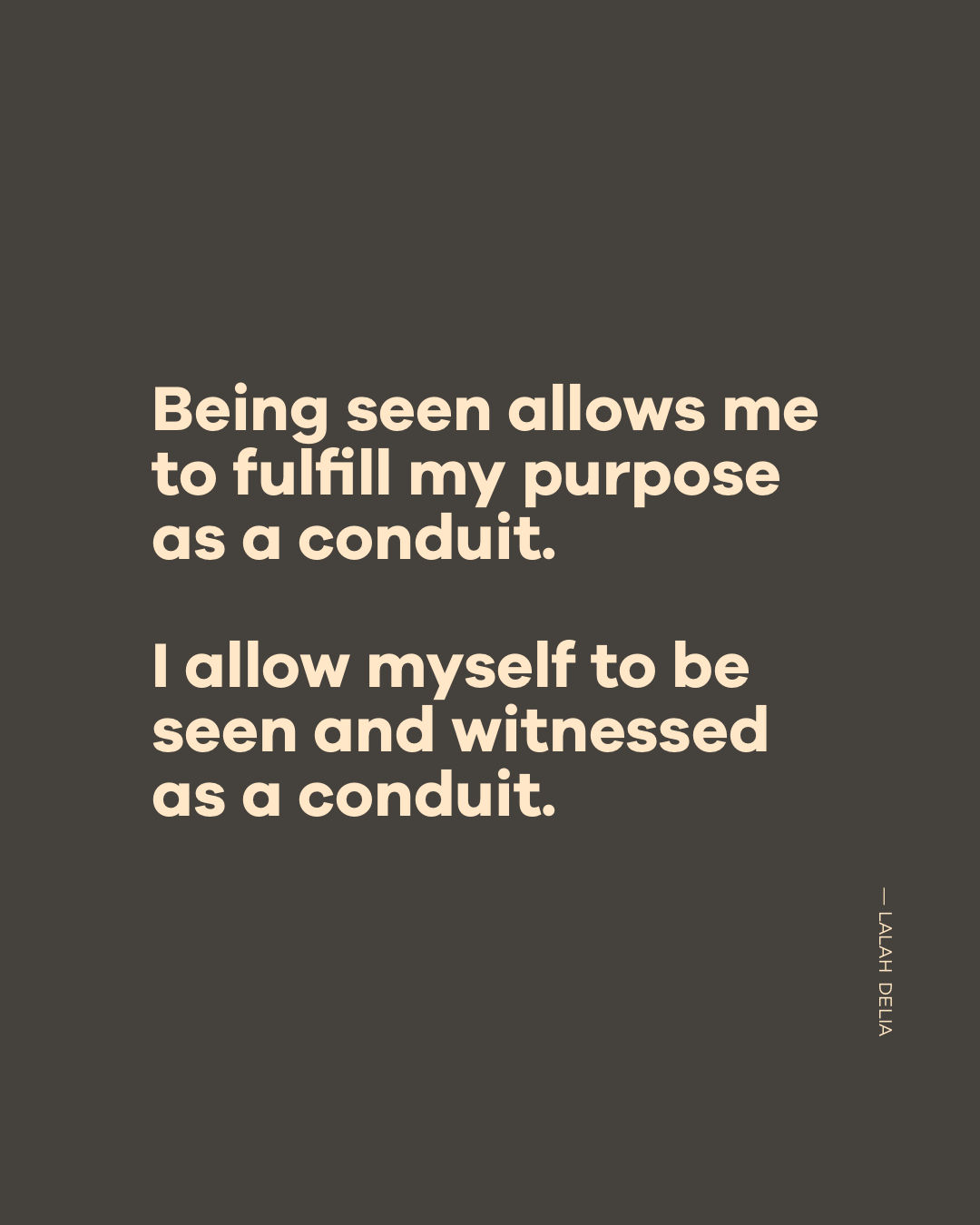 Being seen allows me to fulfill my purpose as a conduit.