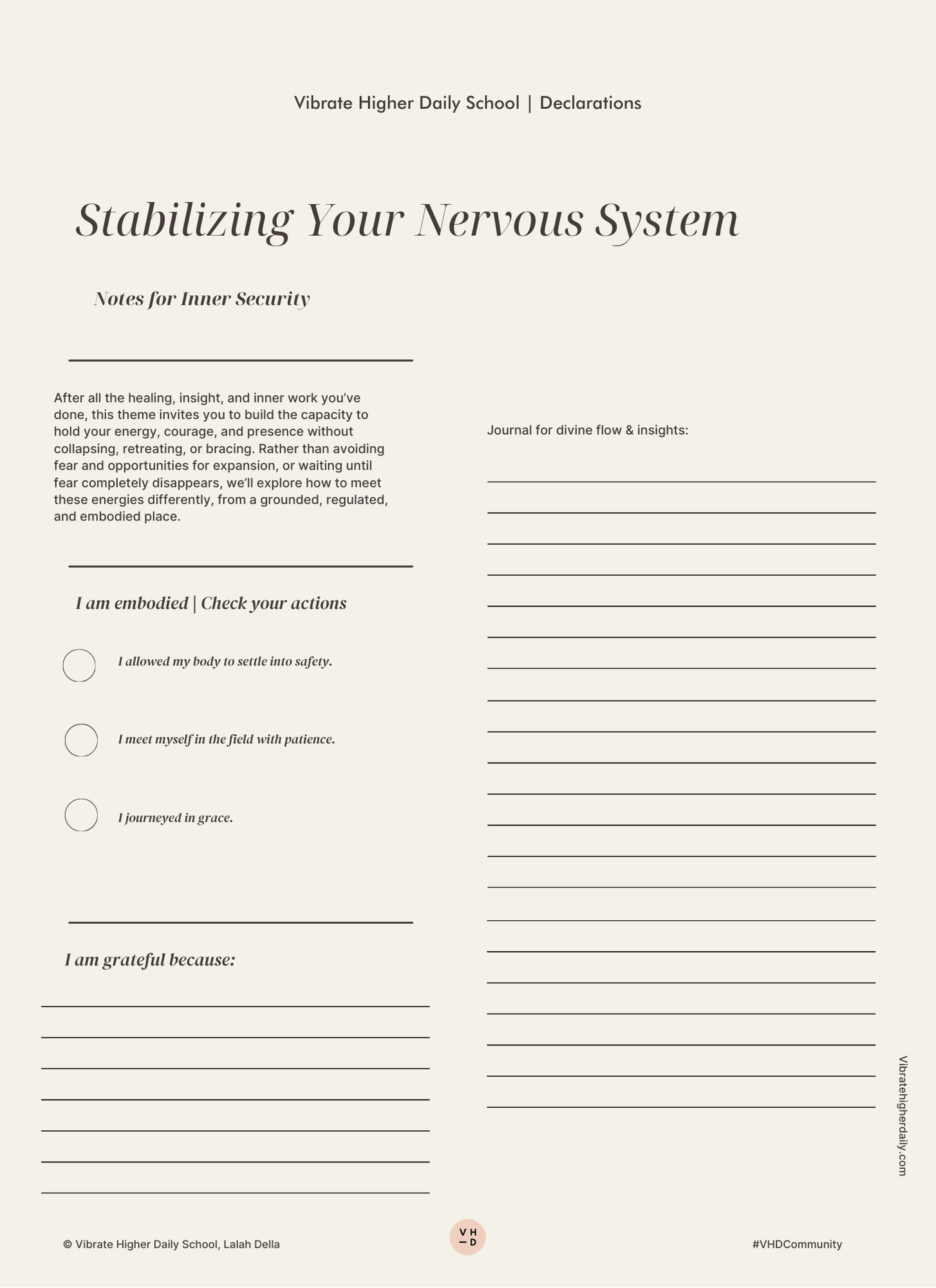 Now you can work even deeper with Stabilizing Your Nervous System with our all-new downloadable and printable PDFs. You can download the journal only or the set, which includes declarations and the journal.