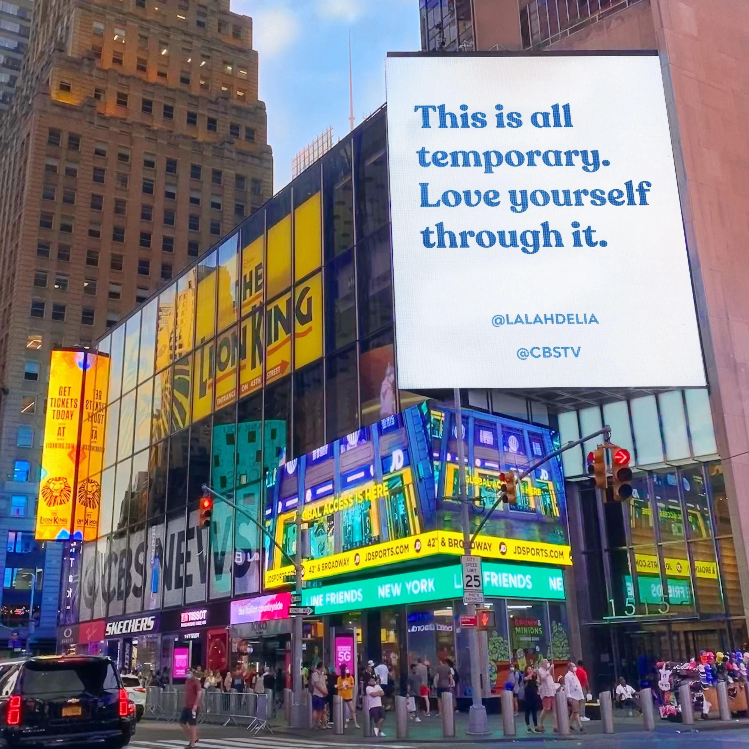 Lalah Delia on CBS New York Time’s Square Billboard for Mental Health Awareness Month 2022, 4 weeks, 4 Lalah Delia quotes