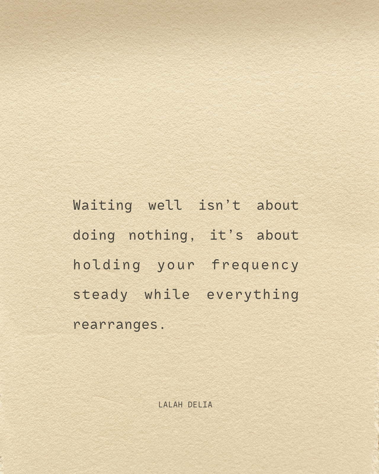 Waiting well isn’t about doing nothing, it’s about holding your frequency steady while everything rearranges. It’s trusting the sacred timing that exists beyond logic and appearances. It’s about holding your frequency with trust, even when you can’t yet see the full path.